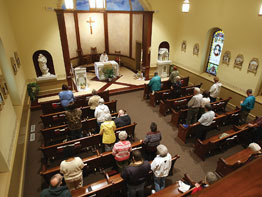 While the new worship center proves to be more than adequate for weekend Masses and other larger events, the Stone Chapel remains a favorite gathering location for many parishioners. With nine pews on either side of the center aisle, it holds approximately 125 people, just large enough for a group service, yet intimate enough for those seeking time for spiritual meditation. Pal Gonzalez, a St. Francis de Sales parishioner of nine years, often attends daily Mass in the Stone Chapel. In addition to being a lector and volunteer in the parish office, Ms. Gonzalez maintains the parish archives. She, more than anyone, can appreciate the history and tradition that the Stone Chapel provides.