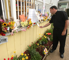 After hearing of the deaths, Father J. Kevin Farmer, pastor of Holy Family, was among the first to arrive at the crime scene. The former Baltimore City Fire Department chaplain was up until midnight ministering to the family, emergency response officials and members of the community.