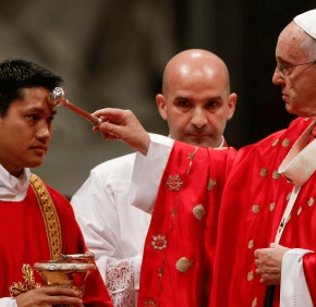 Today, just as on Pentecost, the pope said, the Holy Spirit is poured out on the church and on every follower of Jesus “so that we would leave behind our mediocrity and being closed off, and rather communicate to the whole world the merciful love of the Lord.”