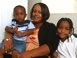 She looks at her two children – Angenette, 8, and Elijah, 2 – and tears stream from her brilliant green eyes.