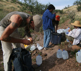 Migrants simply can’t carry enough water for the journey. This summer, No More Deaths in Phoenix brought some 10,000 gallons to Tucson for the border effort.