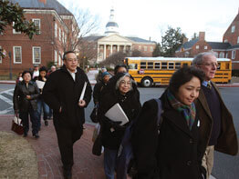 Participants listened to briefings on the issues at St. Mary’s High School before shuttling to legislative offices to meet with their senators and delegates.