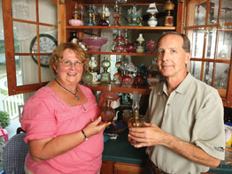 Karen and Phil Ruberry love the stories that go along with the nearly 300 antique lamps in their collection. For five years they have found their treasures through dealers, collectors’ clubs, e-Bay, trade publications, antique shows and auctions, and antique-ing on weekends.