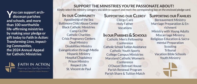 You can support archdiocesan parishes and schools, and more than 100 worthwhile life-affirming ministries by making your pledge or gift today to Faith in Action: Transforming Lives, Impacting Communities, the 2024 Annual Appeal for Catholic Ministries.