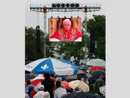 The youth rally included a taped message from Pope Benedict XVI. He assured the pilgrims of his prayers and encouraged them to meditate on the great mystery of faith, the Eucharist. The Eucharist allows believers to relive the sacrifice of Jesus through which he saves the world, he said; it is also nourishment for everyday life.