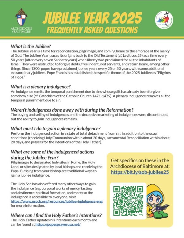 You don’t need to cross the ocean to make a pilgrimage! Visit these official Archdiocese of Baltimore Jubilee Pilgrimage sites to engage with this Year of Hope. Attend Adoration, Confession, Mass, and other religious events at these sites all around Maryland.