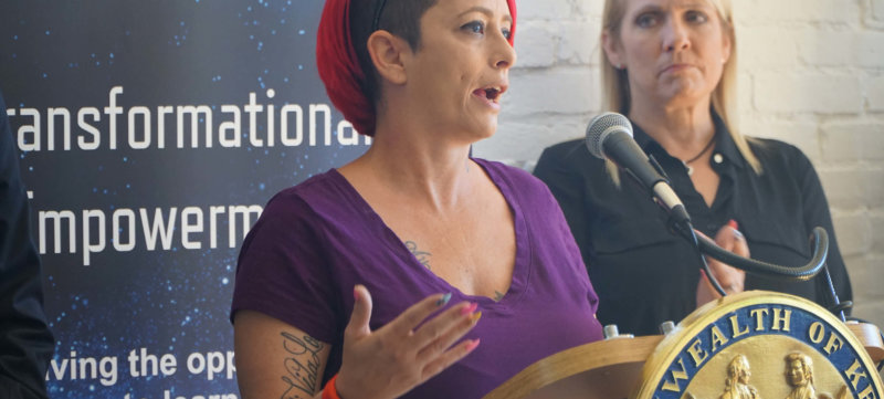 Dickerson shared her story April 18 at a news conference held by the Kentucky attorney general’s office at Survivors’ Corner – a resource center for victims of human trafficking in Louisville.