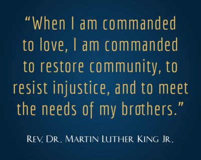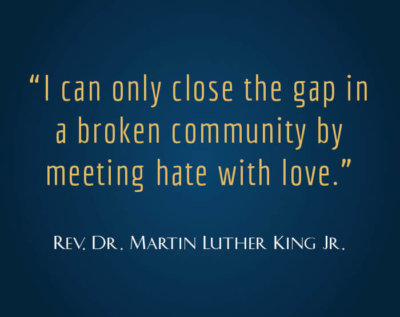Often, we think we may know about our own and surrounding communities. A second look may show, however, that we (myself included) have a lot to learn. For that reason, Dr. King urged his followers – and now he urges us – to learn all we can about both the challenges as well as the opportunities in our diverse communities. In doing so, we will better understand the nature of the problems to be faced and also the goodness and humanity of people who don’t live so far away from us after all.