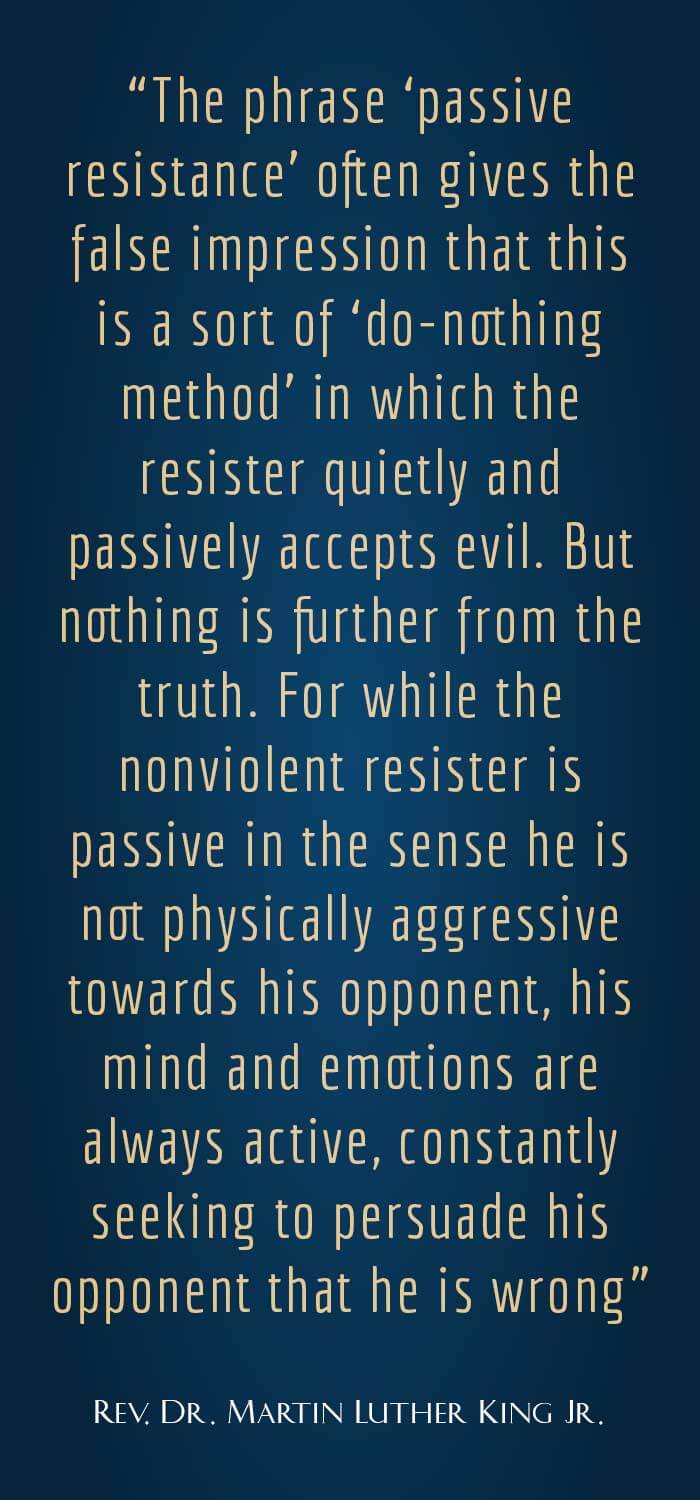 There follows a description of Rev. Dr. Martin Luther King Jr.’s principles of nonviolence: