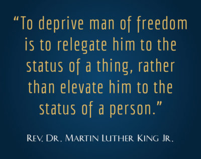Not to be ignored are conditions which create despair and spawn violence in our neighborhoods: lack of education, unemployment, a dearth of decent and affordable housing; a proliferation of illegal weapons; drug abuse and gangs; the disintegration of the family; homelessness; and so much more. These deep and systemic problems do violence to the dignity of real human beings created in the image and likeness of God. Even worse is the tendency on the parts of many who see continued decline as inevitable and who react to these harsh realities with indifference or jaded cynicism. In this stark environment, Dr. King’s principles of nonviolence are more necessary than ever: they are prophetic words of hope that can light the path forward.