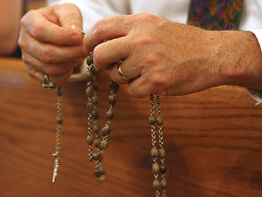 During the Aug. 28 rosary service, Ms. Cherry was one of 25 people who knelt together in prayer before an icon of Our Mother of Perpetual Help. Gently holding her well-worn rosary in both hands, the Dundalk native softly repeated the series of Hail Marys, Our Fathers and other prayers that make up the traditional Marian devotion.