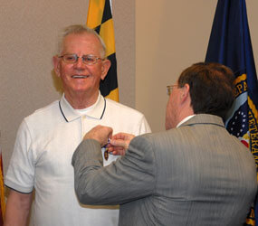 Dennis Smith, director of the VA Maryland Health Care System, pinned the medal onto Stracke on March 9, 2011.