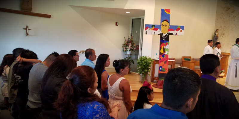 Un colorido crucifijo pintado a mano y de casi dos metros de alto se pudo apreciar en el altar de la iglesia de San Timoteo en Walkersville el 22 de julio durante una misa dedicada al Beato Óscar Romero, un sacerdote y mártir salvadoreño que se encuentra en espera de su canonización en Roma el 14 de octubre. El lugar estuvo al máximo de capacidad gracias a la comunidad hispana del área.