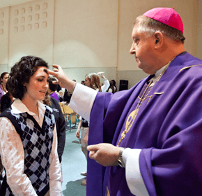 Auxiliary Bishops Denis J. Madden and Mitchell T. Rozanski celebrated Ash Wednesday Masses at Archbishop Curley High School in Baltimore and Archbishop Spalding High School in Severn, respectively.