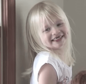 Six-year-old Annie McGann Cumpston’s vivid blue eyes dance with laughter as she playfully tosses back her head of corn silk blond hair and flashes a large gap-toothed smile for the camera.