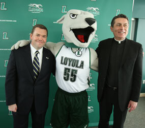 In order, Paquette said that on his watch Loyola athletics will be true to the Jesuit educational model, and care for the whole person; comply with NCAA rules and regulations, not just the letter of the law but the spirit; uphold financial integrity, “being careful stewards of our precious resources”; and pursue excellence in all sports sponsored by the Greyhounds.