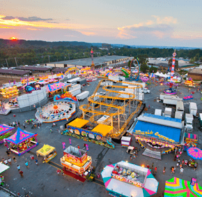 Fairgoers can indulge in numerous traditional concessions, exhibits, rides and games as well as get some hands-on experiences with livestock like cows, poultry and even alpacas.