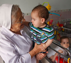 The hospital building has been used as a refuge for women under threat of violence, Sister Sophie said. Other times, it gives no clue about this particular mission, as newborns sleep peacefully in one room of the hospital and toddlers play indoors and outdoors in what has become a huge day-care center. The walls reverberate with the noise the kids generate; it is clear that this is no longer a hospital quiet zone.