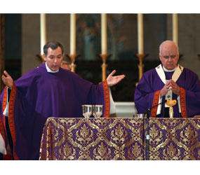 With the cathedral’s altar and crucifix serving as the backdrop, Archbishop O’Brien looked at Monsignor Jarboe and then to parishioners.