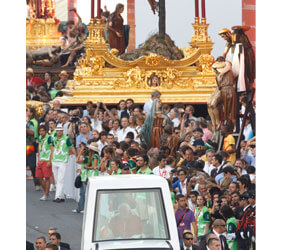 MADRID – The mood at World Youth Day changed dramatically late Aug. 19 as Pope Benedict XVI and hundreds of thousands of young people turned their thoughts to suffering.