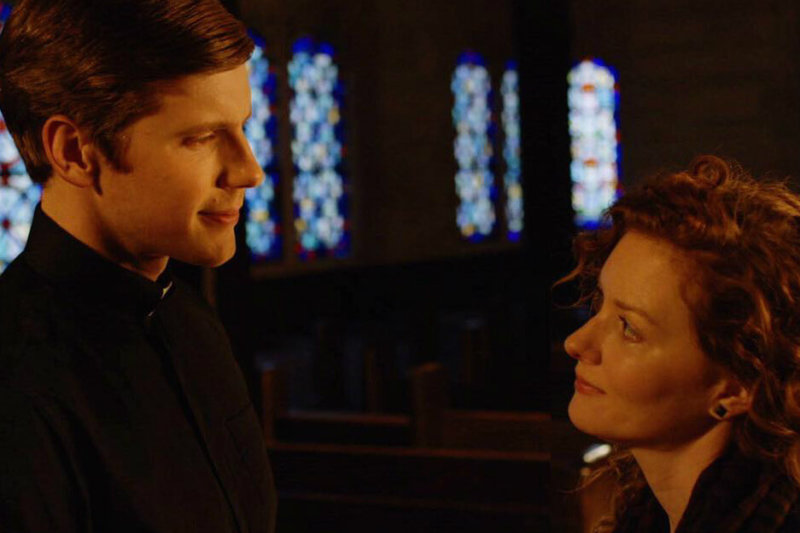 Jane (Wrenn Schmidt), revealed in later scenes to be a vaguely bohemian coffee house singer, starts things off by abruptly announcing that she is terminally ill. But she hasn’t come seeking absolution in preparation for death. Instead, to Father Daniel’s understandable confusion, she solicits funeral arrangement advice from him, e.g., how can she avoid having her mother choose the outfit in which she’ll be buried?