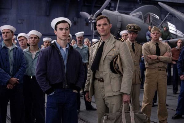As for those who actually fought the battle, they’re represented here primarily by two daring pilots, squadron commanders Dick Best (Ed Skrein) and Wade McClusky (Luke Evans). While on shore, Dick benefits from the support of his loving wife, Ann (Mandy Moore), who argues against the self-doubts that trouble him.