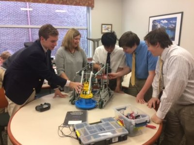 Mrs. Renie Brown, Algebra II, Honors Programming, and AP Computer Science instructor at Calvert Hall, has been a leader in infusing technology into her classroom. Her goal is to give students the best individualized experience by using whatever is needed to differentiate within the classroom. As Calvert Hall stresses the importance of extracurricular activities in the growth of the whole person, Renie has worked humbly and tirelessly to produce one of the top robotics teams in the nation. As the Robotics moderator, Mrs. Brown focuses on teaching students the fundamentals of robot design, cooperative engineering, software coding, driver skills and game strategy. She is filled with a sense of dedication and mission.