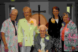 Combined years of ministry, prayer and service offered by six Religious Sisters of Mercy who celebrated jubilees Sept. 9 at Mercy Villa in Baltimore. From left, with their years of service in parentheses, are: Mercy Sister Gess Kirby (70); Mercy Sister Charlotte Rose Kerr (50); Mercy Sister Catherine Reichenberg (70); Mercy Sister Elaine Sebera (50); and Mercy Sister Agnese Neumann (70). Mercy Sister Natalie John, not pictured, was recognized for 75 years of ministry.