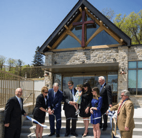 The visitor center, which opens June 1, will serve the more than 400,000 visitors who visit the Grotto annually, according to information from the university. The 4,000-square-foot facility houses administrative offices, a gallery, gift shop and museum depicting the history of the Grotto – the oldest known American replica of the Lourdes Shrine in France.