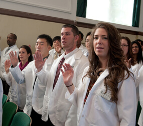 The pharmacy school is a four-year professional school. Students are expected to act and dress professionally each day.
