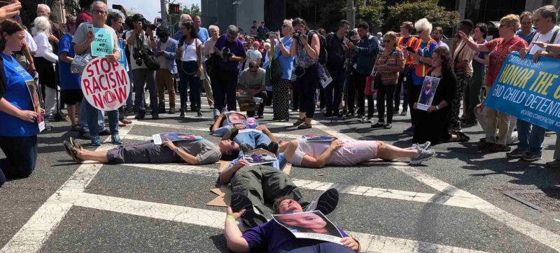 “We have joined the tens of thousands who are outraged at the horrific treatment of immigrant children and families by our own government,” she said. “We are here today to say loudly and clearly, stop the inhumanity. The mistreatment of children, the separation of families, the denigration of our immigrant brothers and sisters done in our name must stop.”