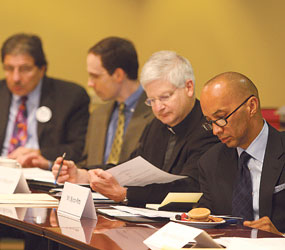 Catholic education authorities such as Thomas H. Powell, president of Mount St. Mary’s University and Seminary, are joined by public education experts such as Nancy Grasmick, Maryland Schools Superintendent.