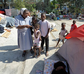 A Salesian nun who lives in one of the roughest areas of Port-au-Prince, Sister Silvi has been sleeping under the stars since the Jan. 12 quake collapsed most of the church sanctuary and other buildings they used for educating neighborhood children.