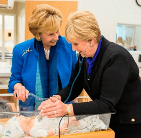 During a recent visit to Notre Dame, Pitts toured the nursing school’s Center for Caring with Technology, which uses simulation experiences to help students develop essential nursing skills.