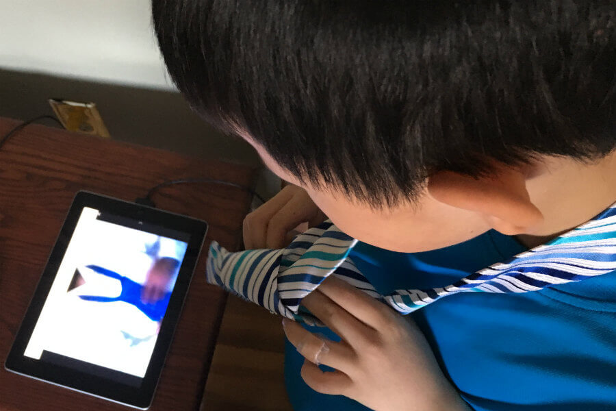My parents sent our second-grader a new tie with a First Communion tie tack to wear, and he could not wait to put it on when it arrived.