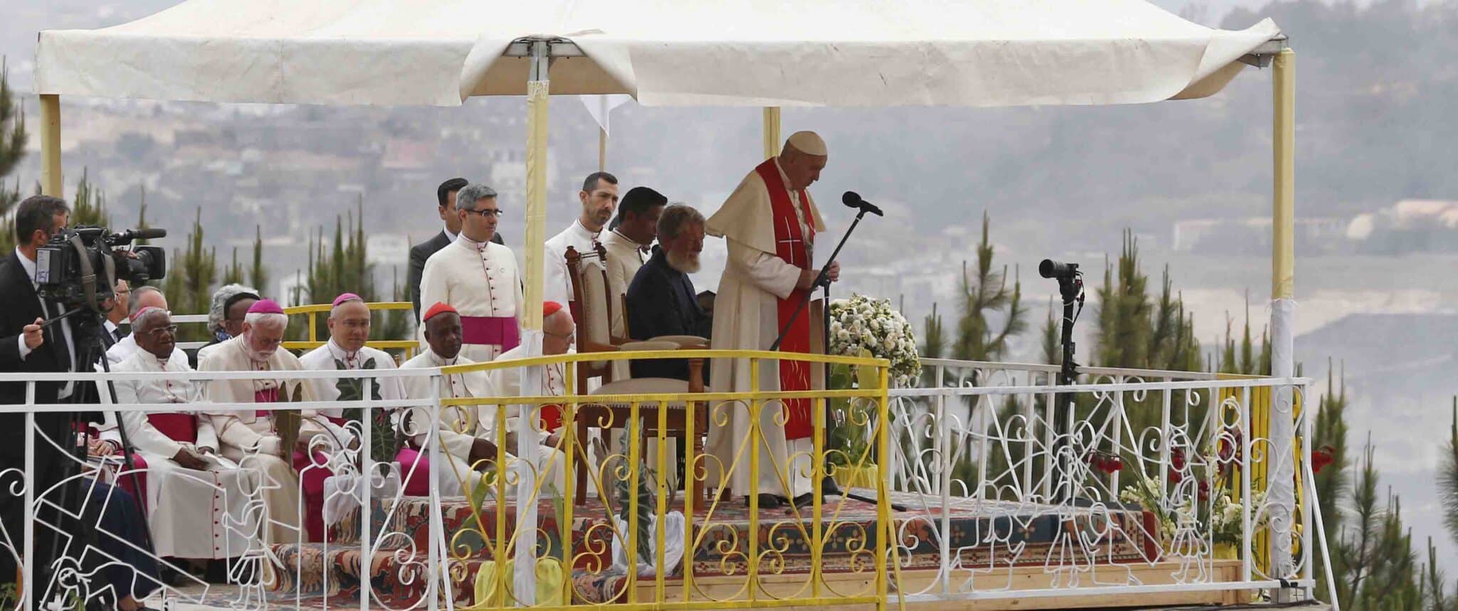 Standing where the phrase “by the sweat of their brow” is a daily reality for hundreds of Madagascar’s poor, Pope Francis prayed for those whose daily bread is earned by hard physical labor and for the unemployed longing to earn a living for their families.