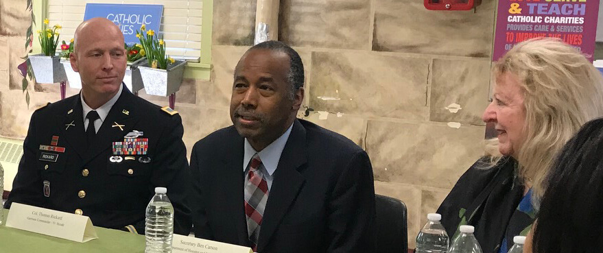 Ben Carson, the secretary of the U.S. Department of Housing and Urban Development (HUD), on March 23 visited Sarah’s House, a Catholic Charities of Baltimore shelter for families dealing with homelessness.