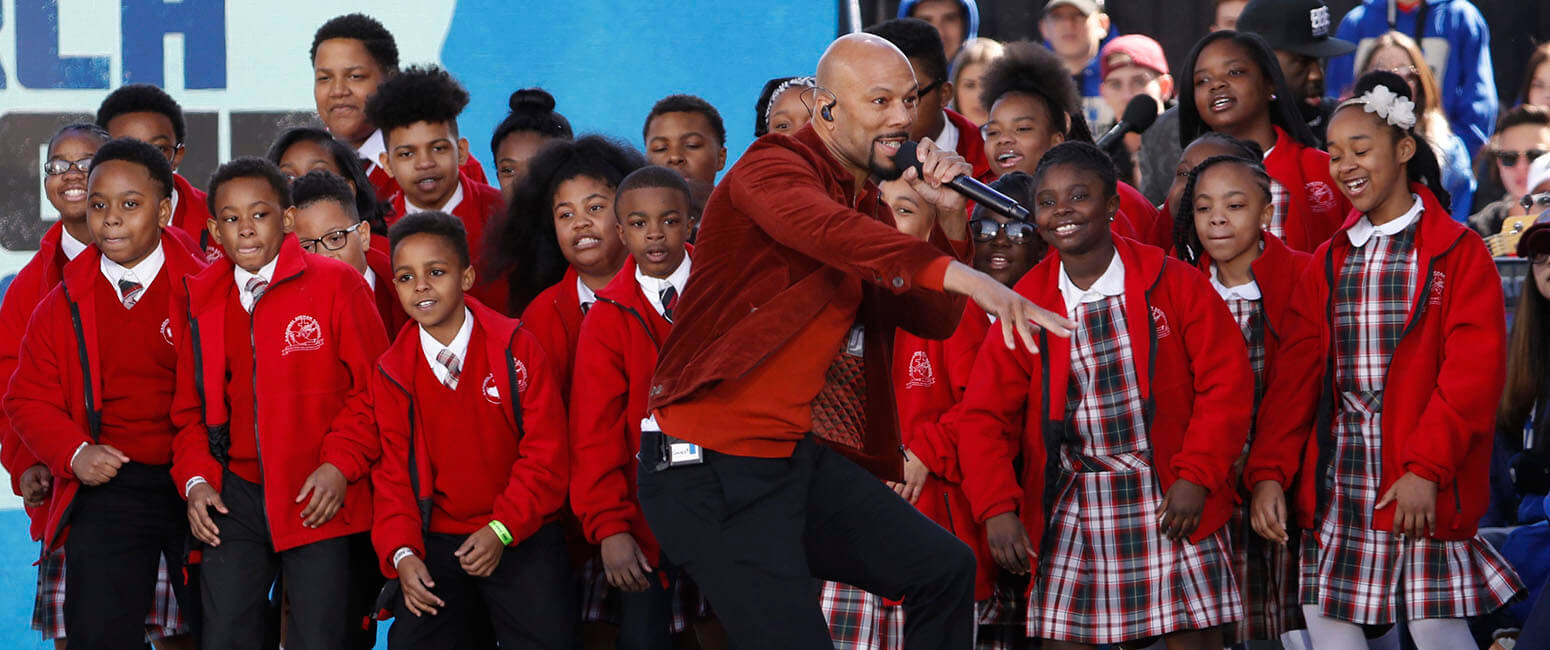 The formal program opened at noon with the choir from Cardinal Shehan School in Baltimore backing Andra Day and Common on “Rise Up.”