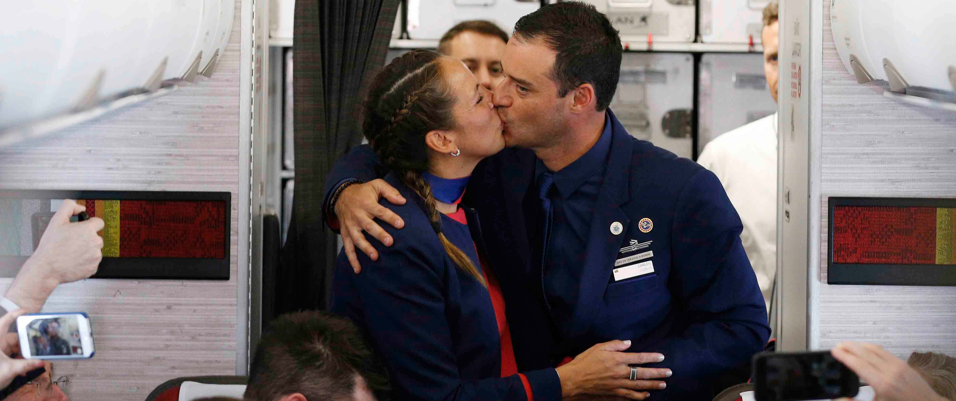Love was literally in the air as Pope Francis performed an impromptu wedding ceremony at 36,000 feet aboard his flight in Chile.