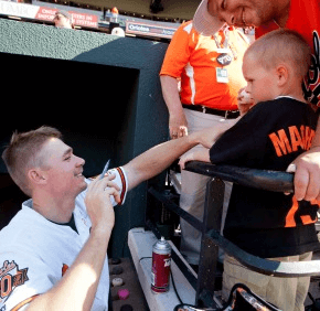The player, #45, whose mom and stepdad attend as many home games as they can, spends 10-12 hours a day at Camden Yards.