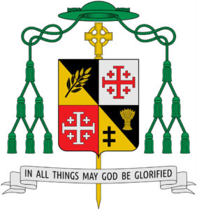For his motto, His Excellency, Bishop Madden, has adopted a phrase from The Rule of Saint Benedict, “IN ALL THINGS MAY GOD BE GLORIFIED.” By the use of this phrase, His Excellency acknowledges his spiritual and religious home with the Benedictines but also expresses the goal of his ministry as a bishop, that all that he does is for God’s glory.