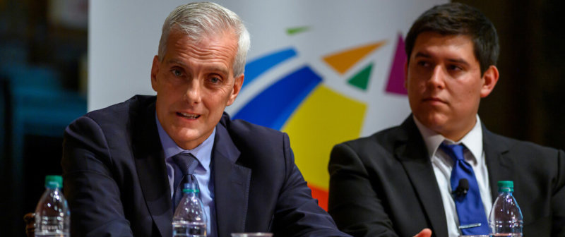 The four panelists participating in the dialogue were Denis McDonough, who served as the White House chief of staff to President Barack Obama; Carlos Curbelo, a Republican from Florida and former member of the U.S. House; Aryah Somers Landsberger, a researcher on migration issues and advocate for immigrants and refugees; and Mizraim Belman Guerrero, a DACA recipient and a politics major at Georgetown University.