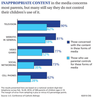 In the USCCB survey, dated March 2010 but not released until April 15, more than 80 percent of those who responded said they wanted to be able to control access to media content depicting sex, violence, illegal drug use, alcohol abuse and profane language.