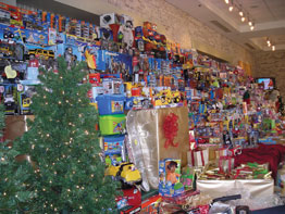 Holy Family parishioners ignored their own economic worries to deliver 30 trucks full of gifts to St. Gregory Dec. 20. In total, Holy Family program organizer Audrey Bush?e said 125 families were adopted and an entire wall at the parish was covered with donations.