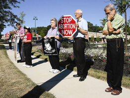 Clutching rosaries and holding signs in support of the sanctity of life, 12 Catholics stood on the sidewalk outside an Overlea shopping center July 21 and peacefully asked God to end abortion.