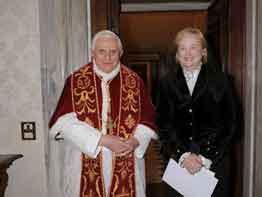 Welcoming Glendon in her new role, Pope Benedict said, “I am confident that the knowledge and experience born of your distinguished association with the work of the Holy See will prove beneficial in the fulfillment of your duties.”