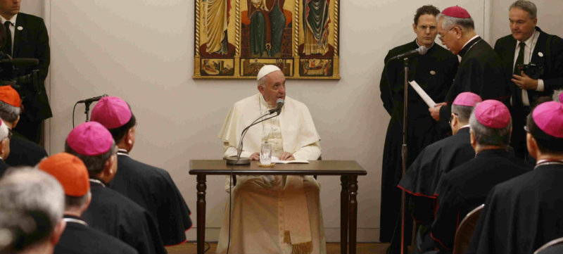 Finally setting foot in the country for the first time less than a month before his 83rd birthday, Pope Francis told the bishops it “has been long in coming.”