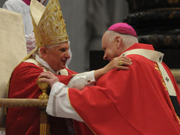 ROME – In a solemn ceremony rich in ancient symbolism, Pope Benedict XVI placed the pallium, a white woolen vestment, around the shoulders of Archbishop Edwin F. O’Brien June 29 at St. Peter’s Basilica in Rome.