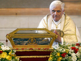 PAVIA, Italy – Paying homage to one of the most important figures of the church, Pope Benedict XVI prayed at the tomb of St. Augustine and called him a “model of conversion” for Christians of all ages.