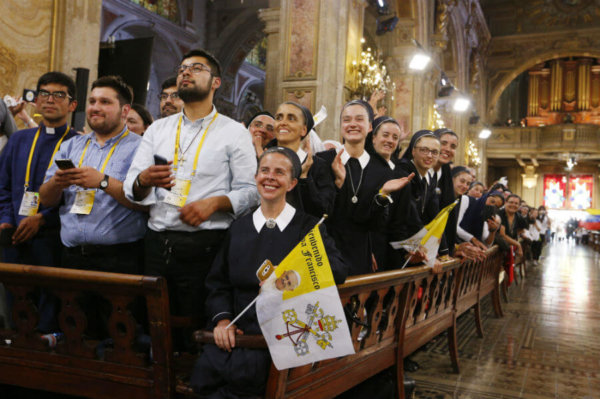 “I know that at times you have suffered insults in the subway or walking in the street; that by going around in clerical attire in many places, you pay a heavy price,” Pope Francis said during the meeting in Metropolitan Cathedral.